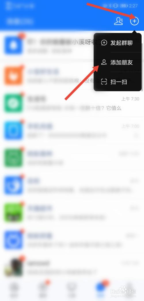 然后在页面右上角选择加号选项,然后选择添加朋友选项。