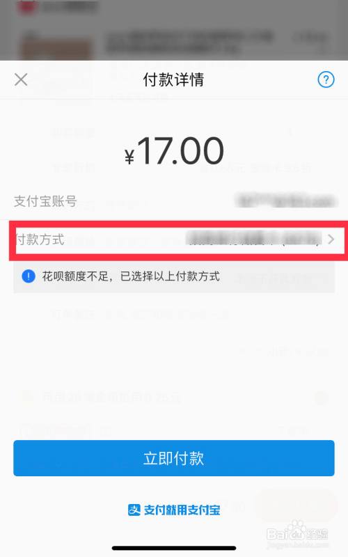 在付款详情页面里,再点击“付款方式”。