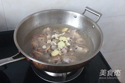 6加水淹没猪蹄为准。加入姜蒜花椒。