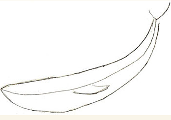 绘制初始轮廓,后部高高举起。在中间画一个鳍。