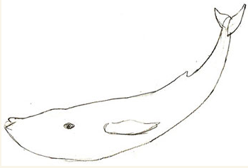 仔细检查鲸鱼的比例。连接鲸鱼身体,尾鳍的光滑线条。