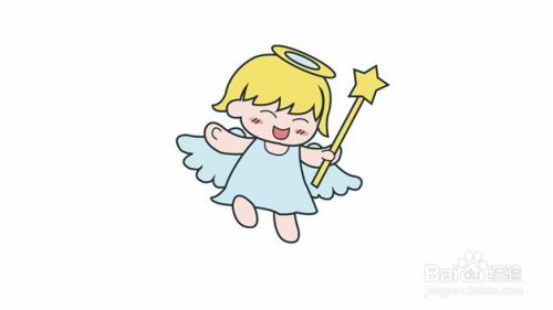 第三步画出可爱小天使的腿部,仙女棒,还有头上的光环。