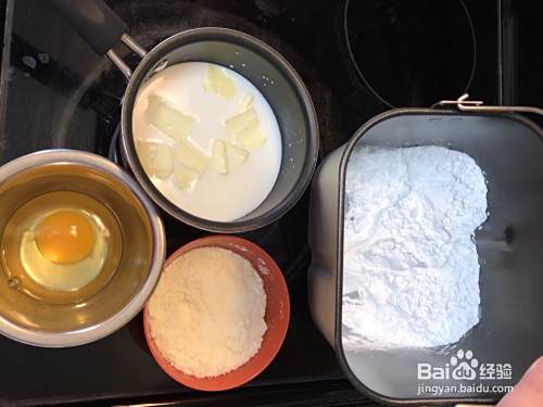 烤箱190度C预热10分钟,称量所需材料,鸡蛋要室温的,打散备用。