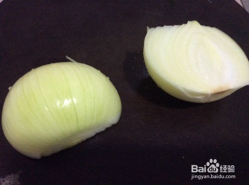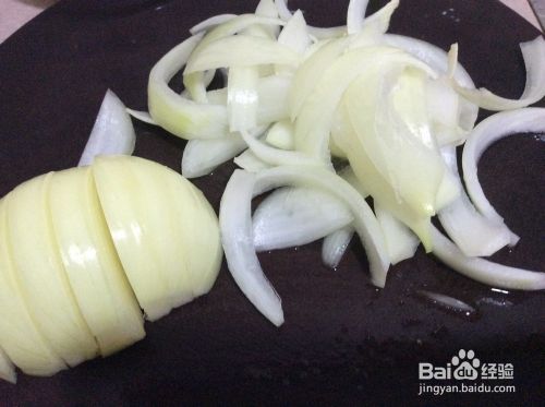 洋葱洗净,去蒂,对剖,切成1厘米左右宽的条,用手瓣成一片一片。