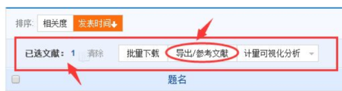 界面下方会出现和输败袭入主题相似题目的文献,找到题目一致的论文,点击选中前方的方格按钮。上方会显示选中文献的个数,”已选文献:1“,系统不会自动清除以往选过的论文数量,需要手动点击”清除“,才能清零。