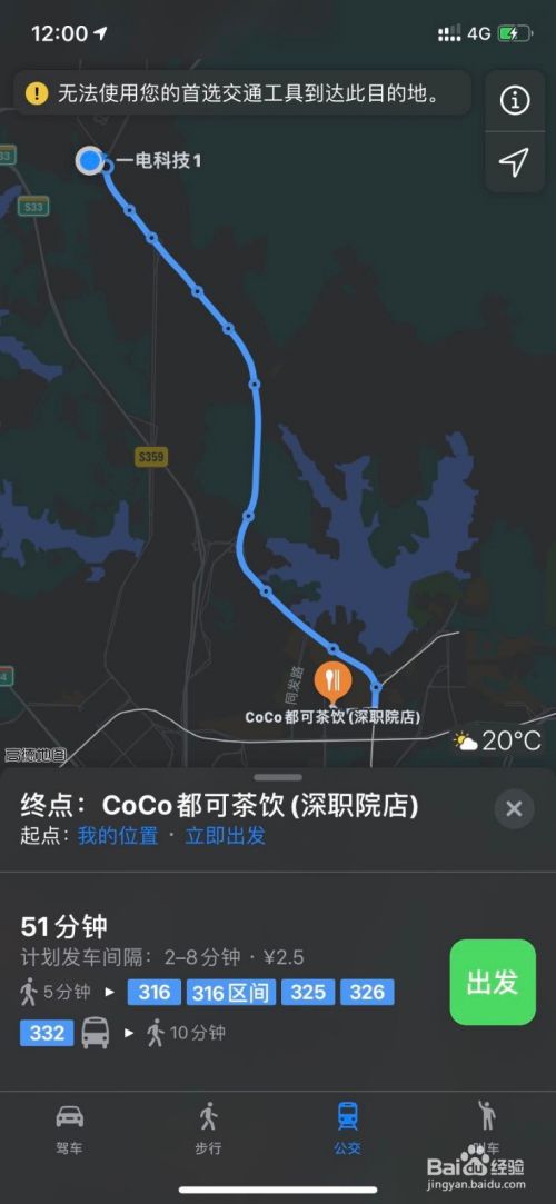 操作方法:地图→→点击屏幕右上角的“i”图标→→输入地点→→公交