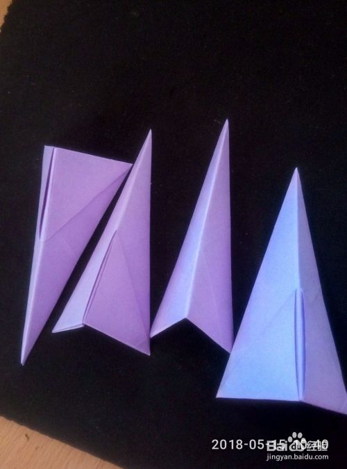 再把折好的四个三角拿出两个拼好,就是把一个放进另一个中拼接着