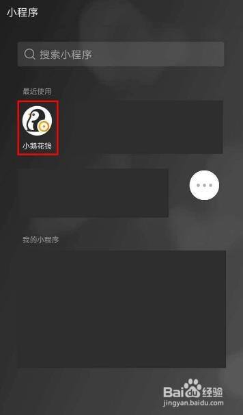进入小程序页面后,搜索出小鹅花钱,点击打开。