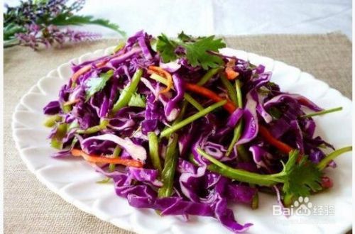紫甘蓝,是卷心菜的一种,相比起绿色的,营养更为丰富。维生素B、C及 β 胡萝卜素均比绿甘蓝含量多,还含有维生素U,花青素及叶酸,是公认的防癌抗衰老的食品。紫甘蓝不但营养丰富、味道清甜爽口、价格还非常的便宜,并且很耐吃 ,更加耐储!