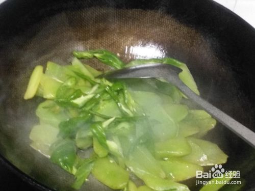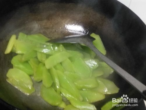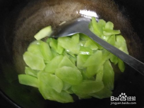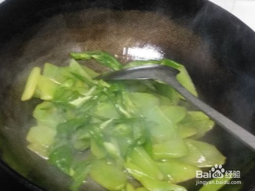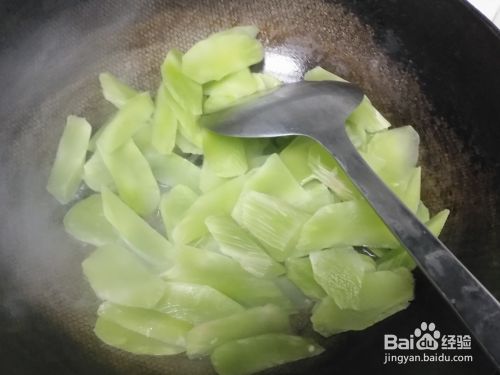 开大火将锅烧热,倒入适量的食用油,将切好的莴笋片倒入油锅之中