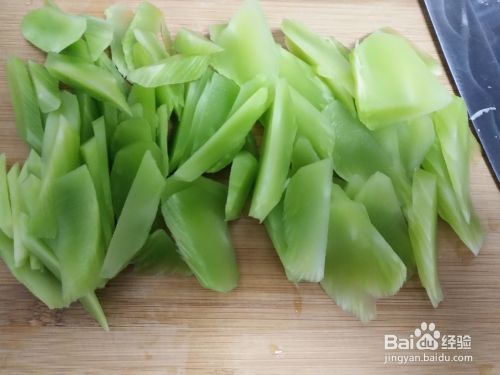 取莴笋1根,去皮后洗净,斜切成片状