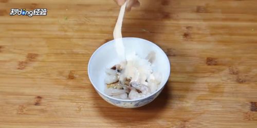 2虾仁洗干净,用淀粉、生抽腌制一下。