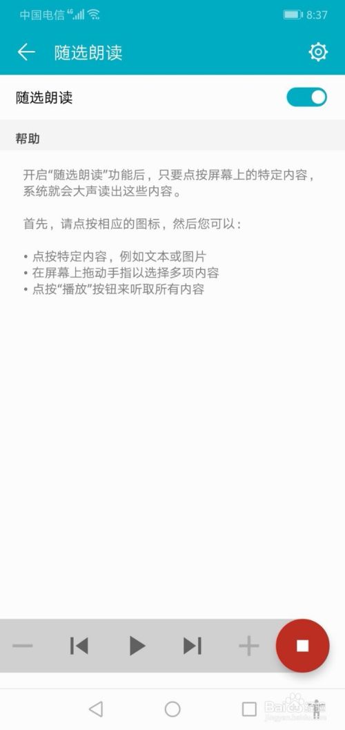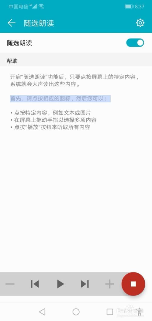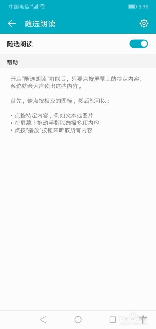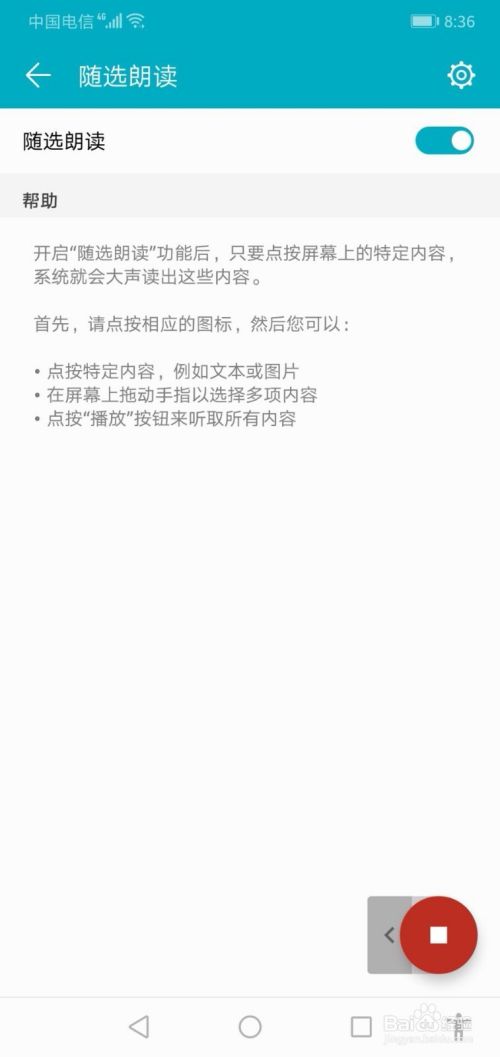 开启随选朗读后,会在手机界面右下角出现一个小人图标。
