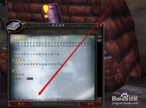 我们从尘泥沼泽和贫瘠之地交接那里,进入树荫旅店,看到墙上的盾牌就可以接受黑色盾牌的任务了。