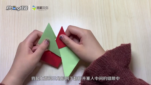9将最上面的三角形向下翻折并塞入中间的缝隙中。