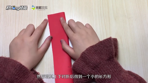 1拿出其中一张彩纸,将其上下对折后得到一个小的长方形。
