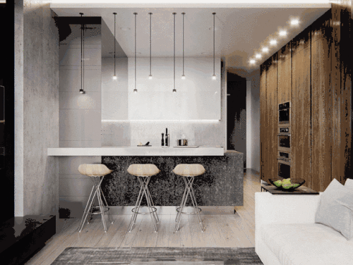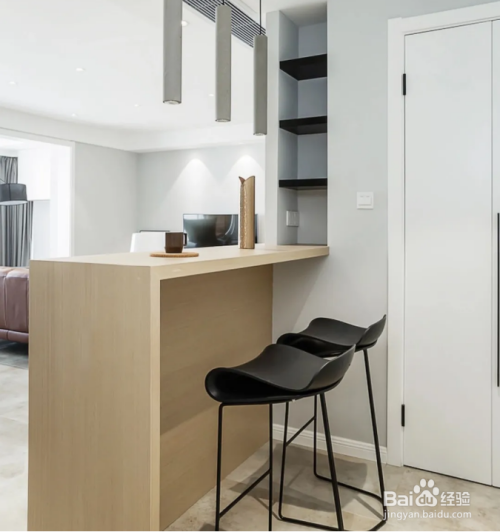 吧台可以说是小两口营造情趣的美好空间,夜里在这里品品酒,聊聊白天的开心或不愉快,瞬间就能从繁杂的工作中走出来。