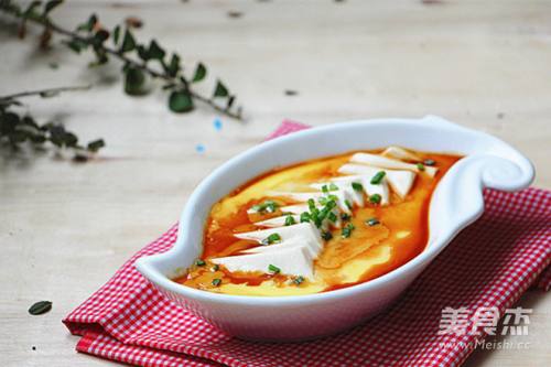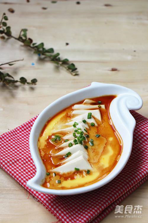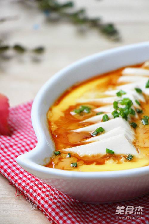 相当嫩滑的一道菜,鸡蛋与豆腐真是完美的搭配,蒸好的鸡蛋豆腐,已经完全融合在一块,分不清哪是鸡蛋,哪是豆腐,入口即化相当嫩滑。很适合老人和孩子!