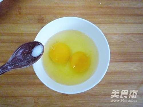 5鸡蛋打入碗中,加入少许食盐