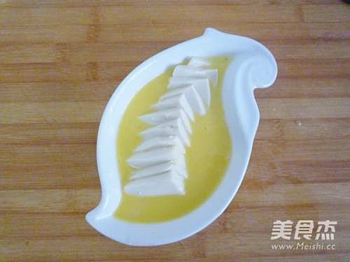 7搅打均匀的蛋液倒入豆腐中