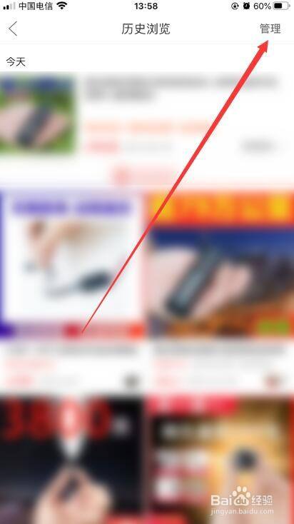 在浏览记录页面选中需要删除的记录点击管理