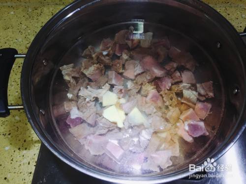 然后接清水,加入姜片4片,倒入1勺料酒,中火炖煮30-40min左右。