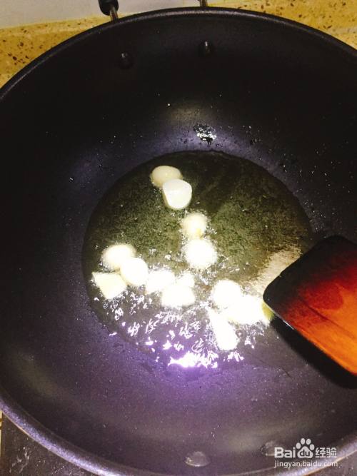 牛肉煮好捞起备用,锅内烧热油,加入蒜瓣,姜片