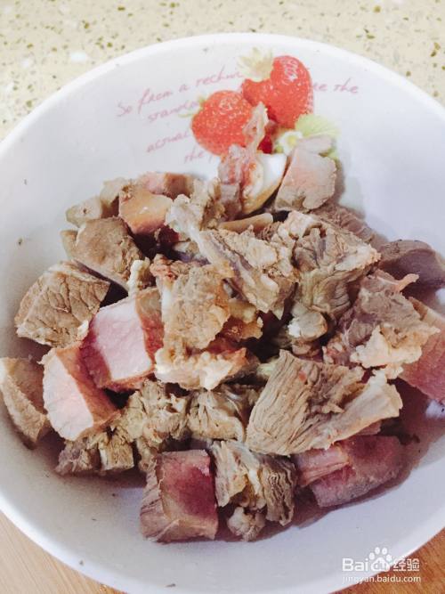 买来新鲜牛腩,先清水泡10min,倒出血水。滤出接清水煮10min,捞出牛肉,把水倒掉。把牛肉切成4,5厘米的小块,不要太小也不要太大。