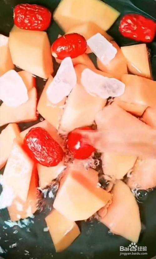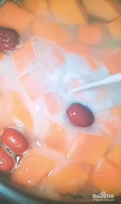 木瓜下锅加少量清水,加红枣冰糖煮开,大概煮8分钟左右。