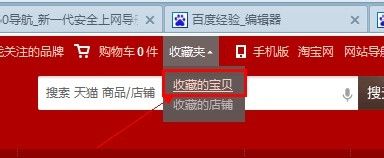 然后把鼠标移动到页面的“收藏夹”上面,在出现的菜单中选择“收藏的宝贝”