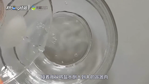 将盐水倒入大的容器内。