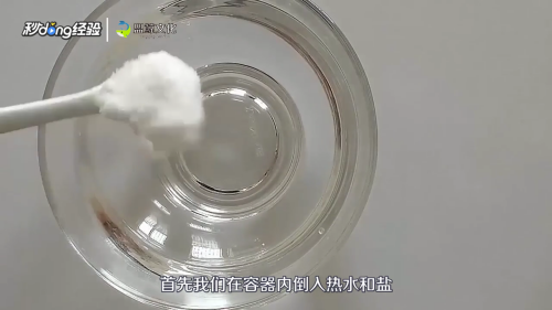 在容器内侧倒入热水和盐。