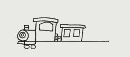 接着画出火车后面的车厢,车厢的高度比驾驶室底,先画出长方形的顶部。