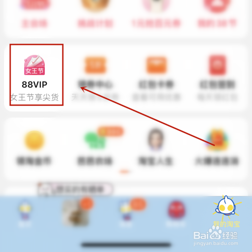 首先,打开【侨摸淘宝】app,进入言耕岔【我的淘宝】页面,点击【88VIP】;