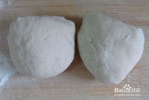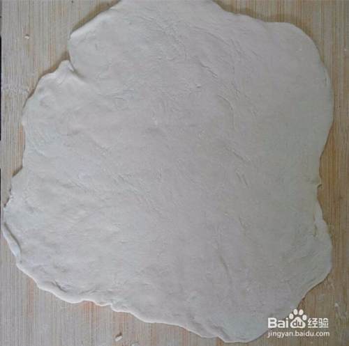 将面粉和盐,清水混合搅拌揉成光滑面团,盖上保鲜膜发10分钟,发好的面团分成均等的两份,擀成面皮
