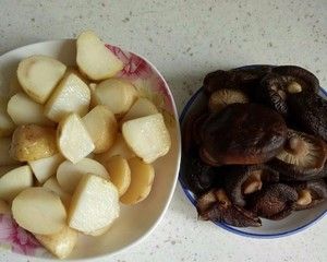香菇提前用冷水泡发,备用,土豆削皮,切成块状,过冷水,取出多余的淀粉,备用。