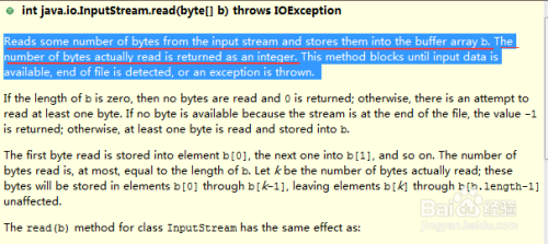 且看is.read(b),方法的API解释,其返回值是读取的流的真实字节数。我们就可以利用这个返回值len,再每次存储数据到sb中时指定长度为len。