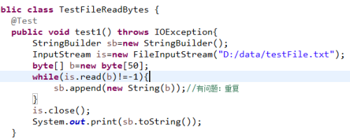 sb.append(new String(b));每次都把b中的50个字节数据存储到sb中;