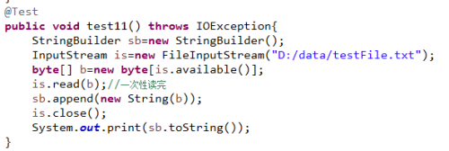 首先文件是全英文,因为英文的每隔字符只占用一个字节,所以使用字节流读取;如果是文档有大量中文,建议使用字符流。