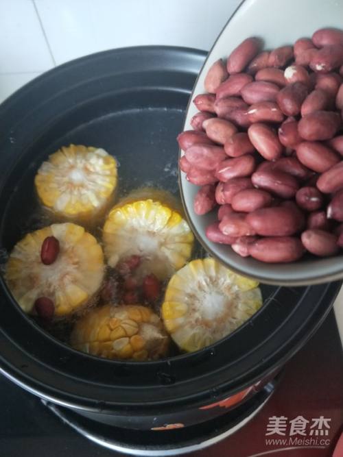 4准好好材料;红衣花生,玉米切段,白萝卜,山药