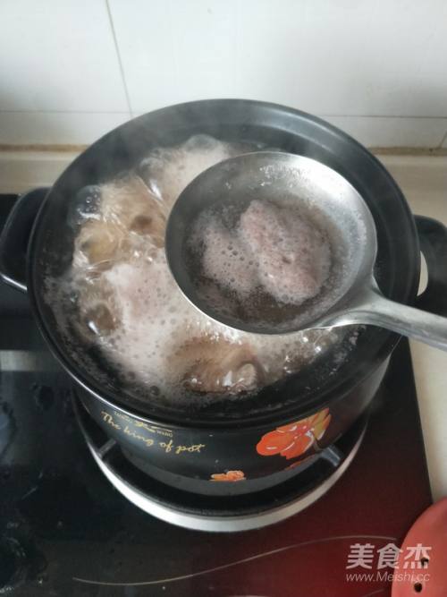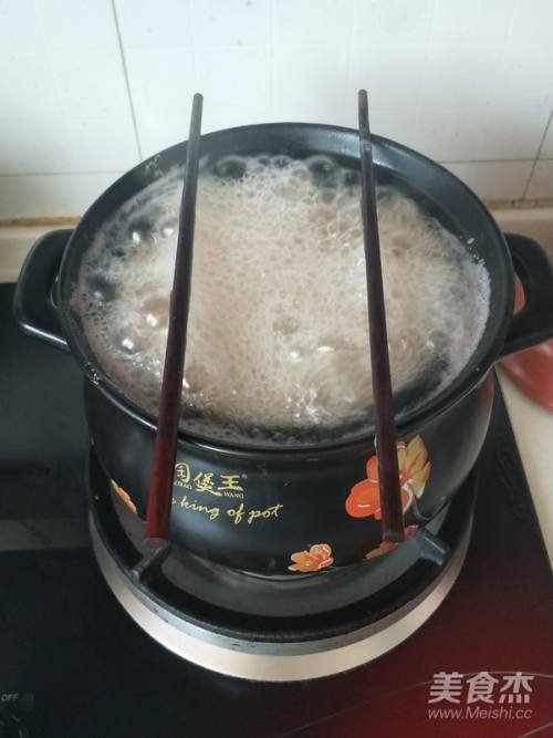 10转中火慢慢熬煮,此时会有浮沫,拿勺子捞取浮沫。