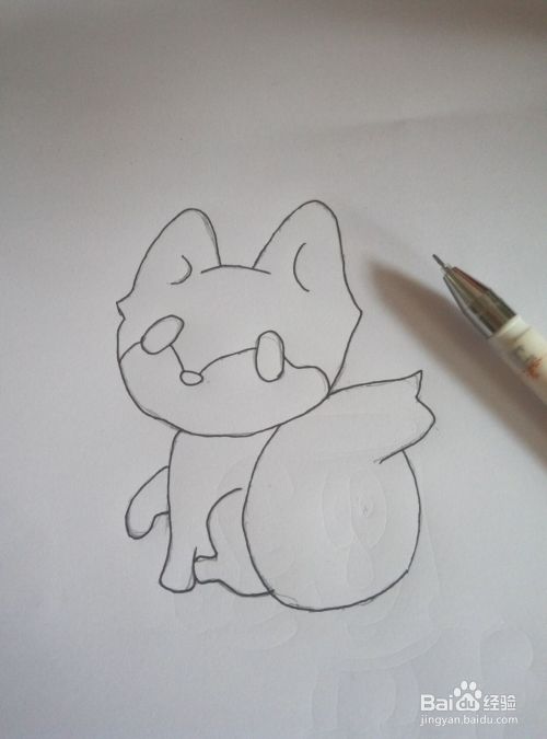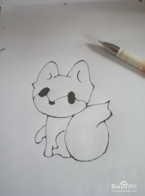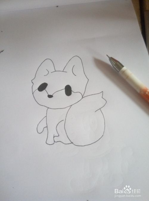 再拿出圆珠笔把画好的狐狸模型线条加深