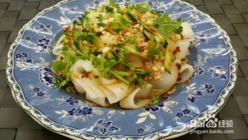 成品1,放了酱料1和青瓜丝、香菜末、蒜末。