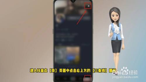 进入抖音在【我】页面中点击右上方的【三条线】图标。