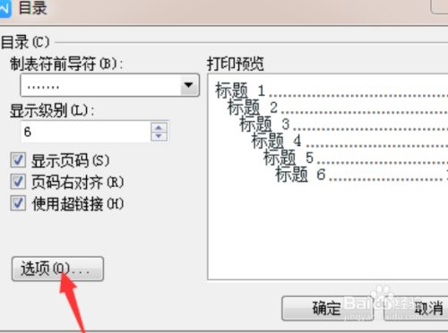 点击【选项】会有更详细的设置内容,设置完毕点击确认就会出现自己想要的关于目录点的状态。