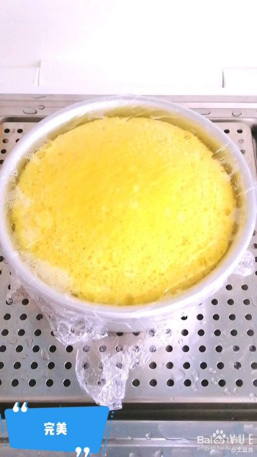放入蒸箱,上汽后大火蒸40分钟,时间到开锅,蛋糕涨发很完美。