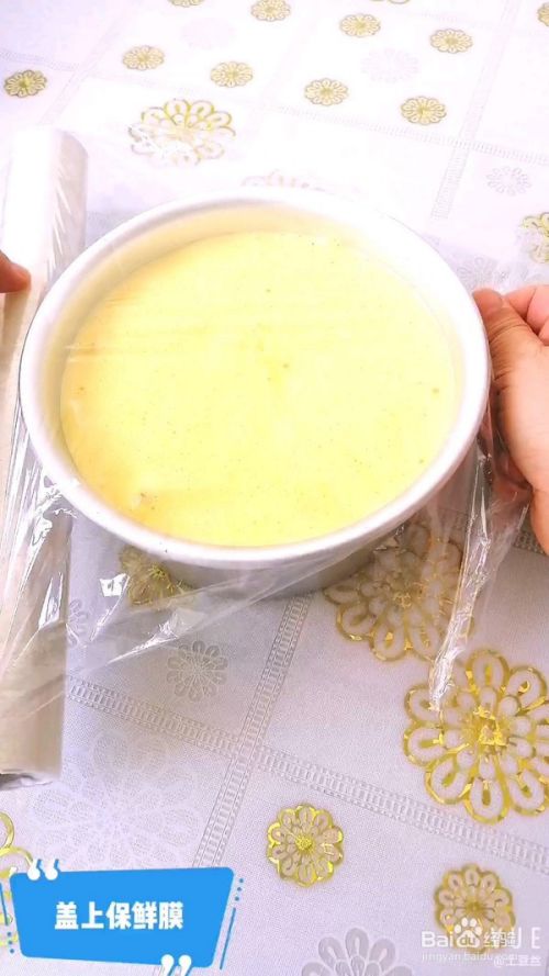 我用的是六寸模具,倒入蛋糊,震去气泡,盖好保鲜膜
