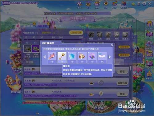 开活跃度80宝箱,什么叫活跃度80宝箱?就是大家在每天上游戏玩的时候,在参加了一些指定的活跃任务完成后,系统会赠送大家活跃点数,累积开到第4个宝箱,也就是80活跃度的时候,在这个宝箱里,是有几率开到一个魔法棒的,这个几率大概百分之50把,所以大家每天要坚持开!