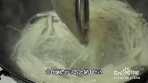 金针菇洗干净放入锅中焯水,焯好水之后捞出来控水备用。