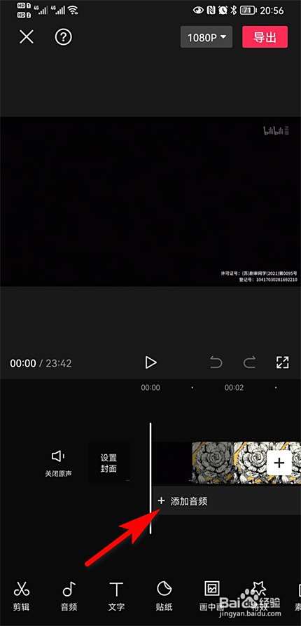 抖音可以添加自己说的话,打开剪映,导入视频,点击添加音频,添加自己说的话即可,以下是具体操作步骤: